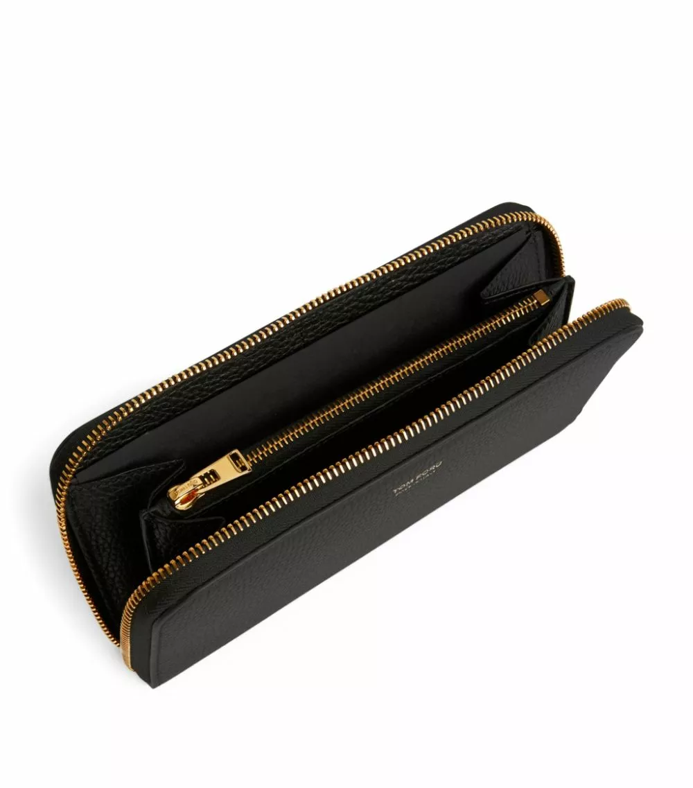 Proving to be a fine home for your monetary essentials, TOM FORD’s continental wallet is rendered in grained leather with gold-tone hardware. Simply detailed for minimal appeal, it opens to reveal generous storage options for cards, coins and notes alike.