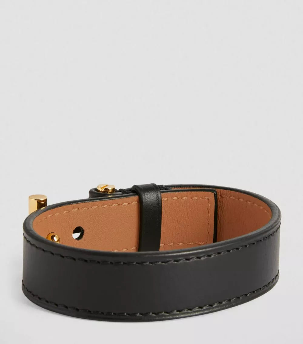 TOM FORD takes the aesthetic of a classic leather belt and miniaturises it to form this bracelet. Characterised by a gold-tone T buckle and a set of eyelets, it has a masculine aura that effortlessly enhances day-to-day edits where a touch of luxury is required.