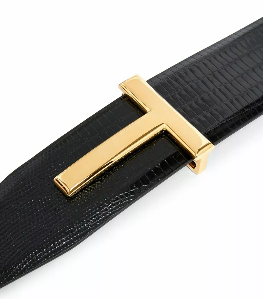 Those who seek ultimate luxury in their accessories will revel in the exquisite lizard skin of this TOM FORD belt; it lends an elegant, textural finish that perfectly puts the spotlight on the House’s close attention to fine craftsmanship. Its desirability doesn’t end there, however – the iconic T-shaped clasp is presented in a polished gold-tone finish to ensure it’s as refined as it is recognisable.