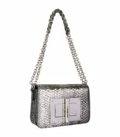 Embolden your evening look with python skin and the iconic turn lock accent representative of the brand.