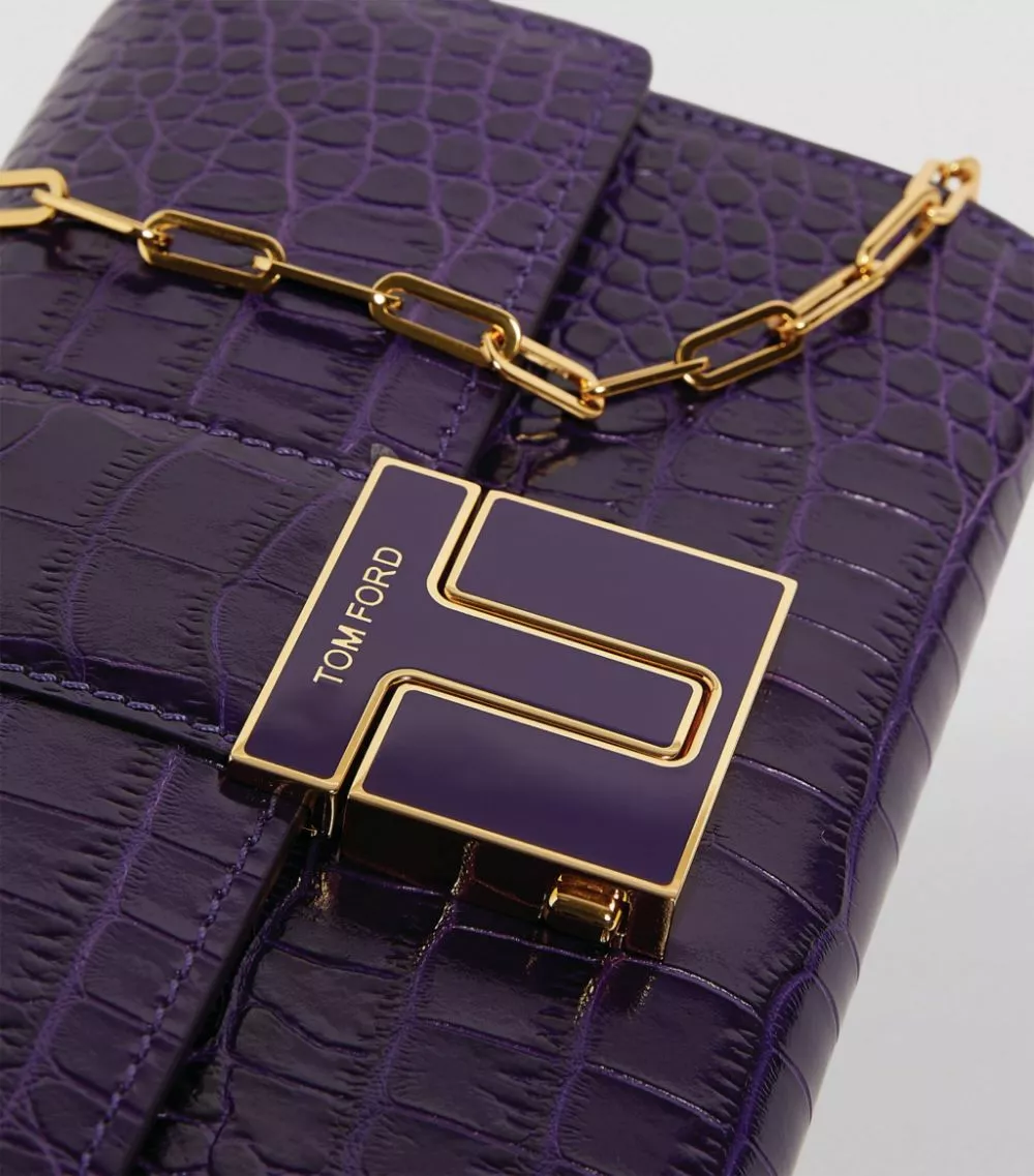 As its name might suggest, the TOM FORD T Clasp bag revolves around its fastening – a sleek detail in which a ‘T’ motif secures the flap shut. When closed, it presents a solid plate of opulent gold-tone metal that stands in exquisite contrast to the silhouette’s luxe croc-embossed leather exterior.